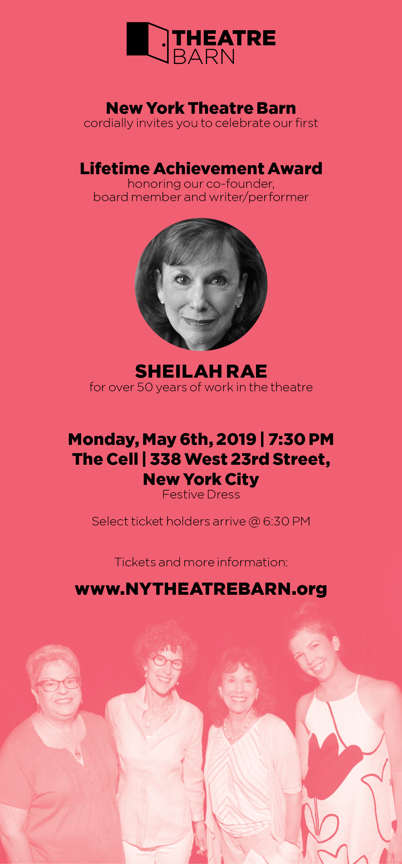 Longtime League member and past LPTW President Sheilah Rae is being honored by NY Theatre Barn with a Lifetime Achievement Award on May 6th at The Cell, NYC.