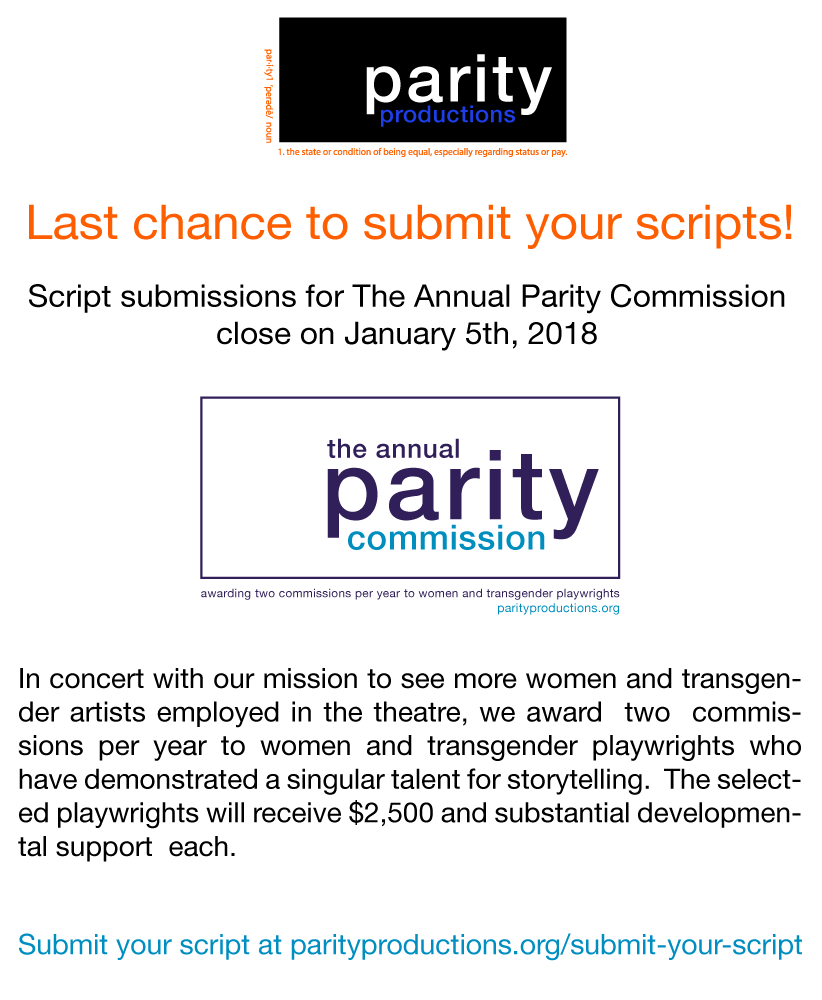 Script submissions for Parity Productions’ Annual Parity Commission close on January 5th, 2018.
