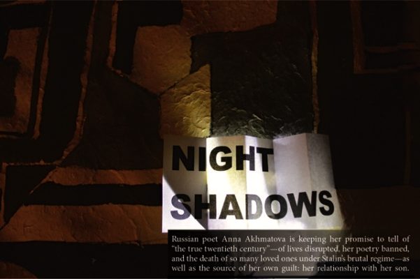 NIGHT SHADOWS—Or, One Hundred Million Voices Shouting Written by Lynda Crawford Directed by Scott Klavan This play focuses on the life of Russian poet Anna Akhmatova, just prior to, during, and after the Russian revolution. In the play she is keeping her promise to tell of “the true twentieth century”—of lives disrupted, her poetry banned, and so many loved ones lost under Stalin’s brutal regime. We find Akhmatova's story very inspiring and relevant to our world today. NIGHT SHADOWS will…